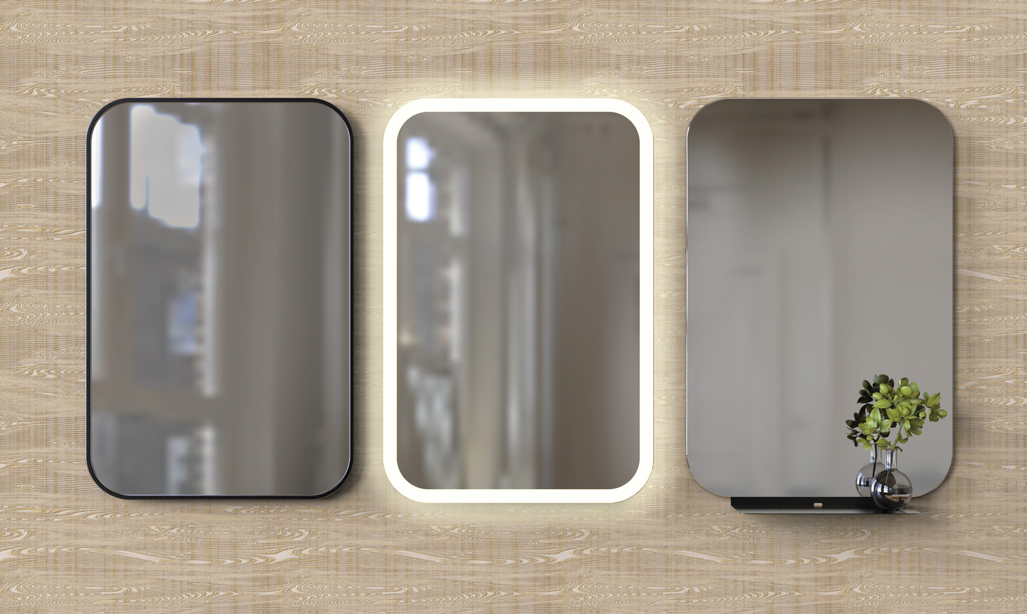 Each Elvari mirror, made of high-quality glass, features radiused corners and polished edges for a soft, sleek and symmetrical look. For LED models, the perimeter of each mirror is illuminated with LEDs providing both ambient lighting and visual appeal. With Correlated Color Temperature (CCT) options of 3K, 4K or 5K, the mirrors accommodate a range of lighting preferences.