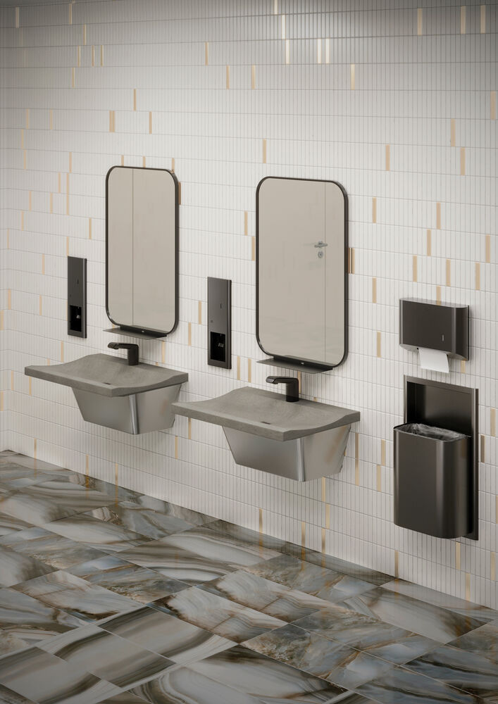 “The expansive options in the Elvari Mirror Collection maximizes design versatility while enhancing unified style and modern elegance to restroom environments,” says Jason Renner, Senior Product Manager, Bradley Company.